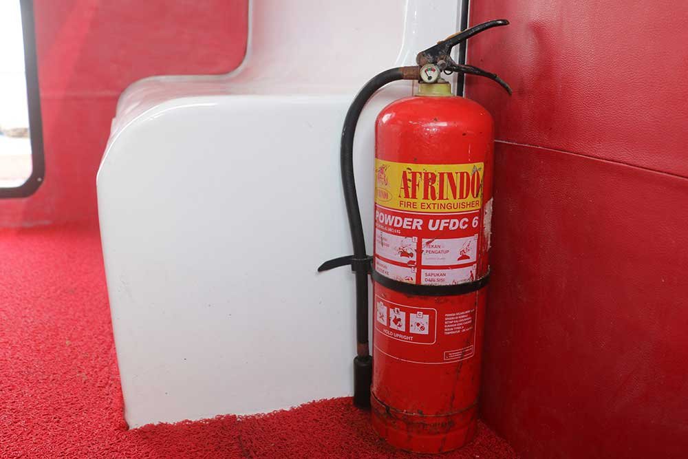 To ensure your safety in crossing the ocean towards Nusa Penida, we use the latest technology and safety equipment such as 3 life raft units, 2 life rings, and 2 units of Fire Extinguishers.